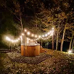 A Domki Naturalnie - Dom Duo 2 Glodowo dispõe de terraço com vistas para a piscina, bem como de piscina privada.